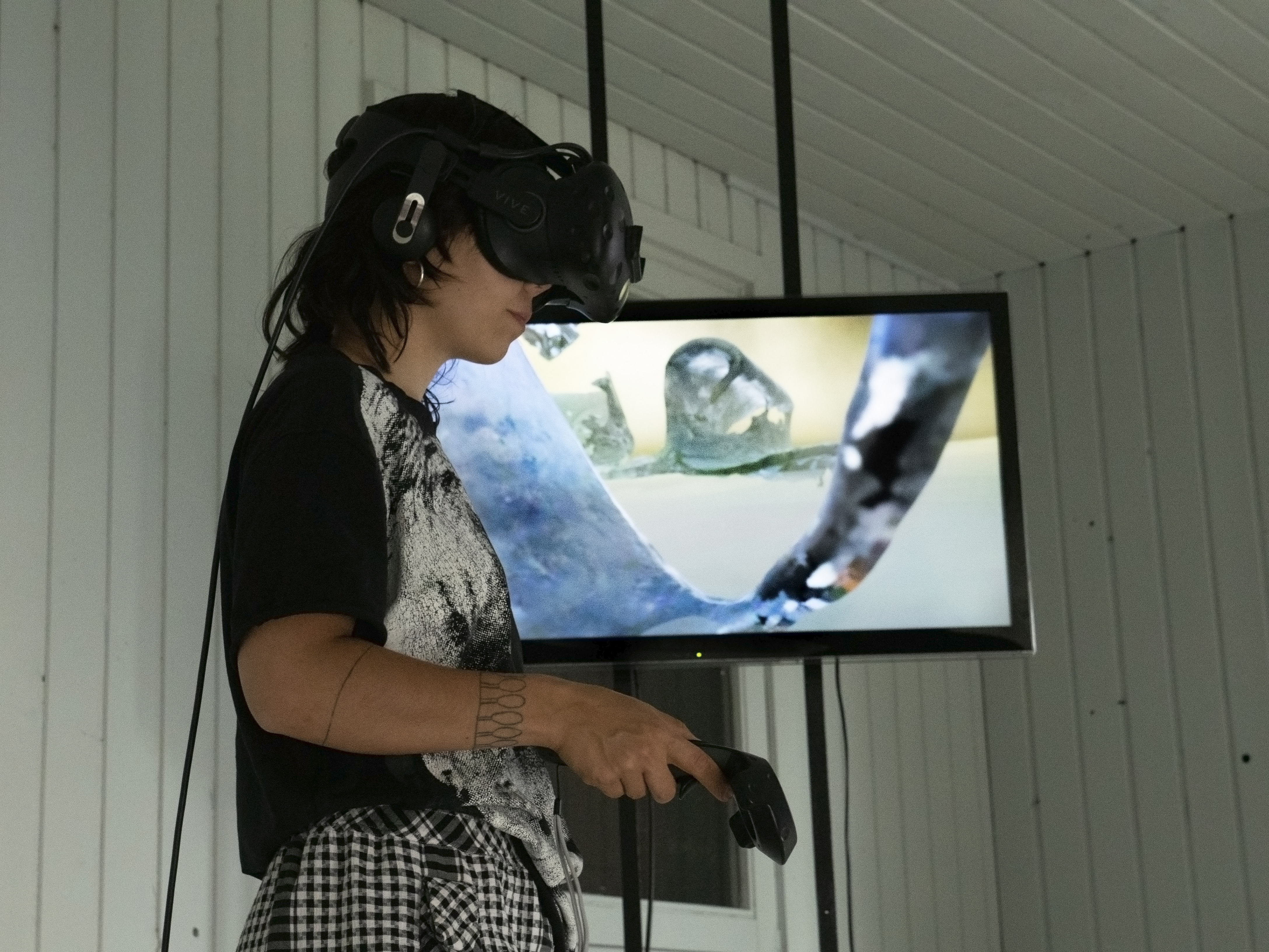 The virtual installation undressing giants [ skin I ] is a conglomerate of a shedding cycle’s remains. An abandoned shell of a past consciousness – an abstract organism of creation that is already left behind by its host. Visitors are the protagonists of the installation’s eerie space. They become players as they take a first-person point of view while cruising around the floating parts of this entropic, fragile yet solid, ultimately unknown body. They become players, who – called by the sirens of this virtual landscape – are unable to resist the urge to seek action and look for treasures in the seductive, actually bottomless void of the installation’s reality.